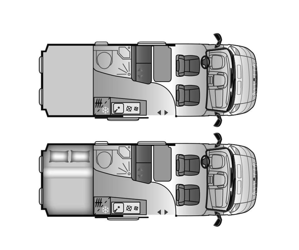 Doppelbett im Heck (cm) : 190 x 70, 180 x 70, 170 x 40